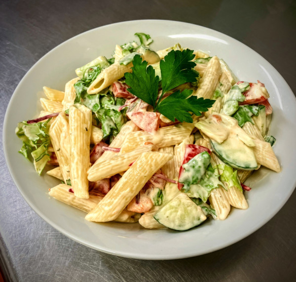 Zeleninový salát s bazalkou, olivami, vejcem a nakládaným tuňákem